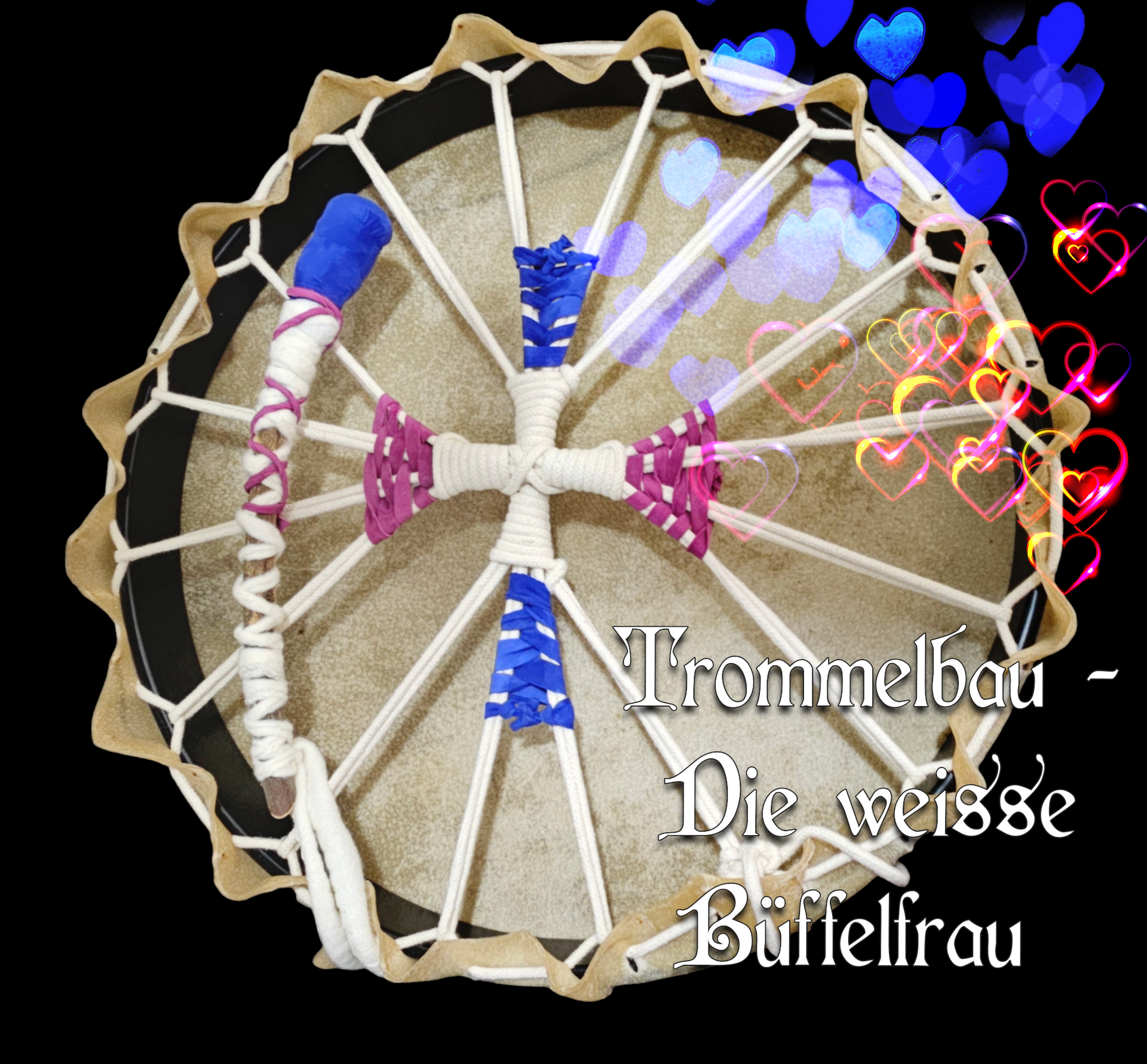 . . . entsteht mit Zeremonie, Weihe/Segnung, ein ganz besonderes Unikat. Es ist Deinem eigenen, ganz speziellen Thema gewidmet und so wirkt die Trommel dann auch.